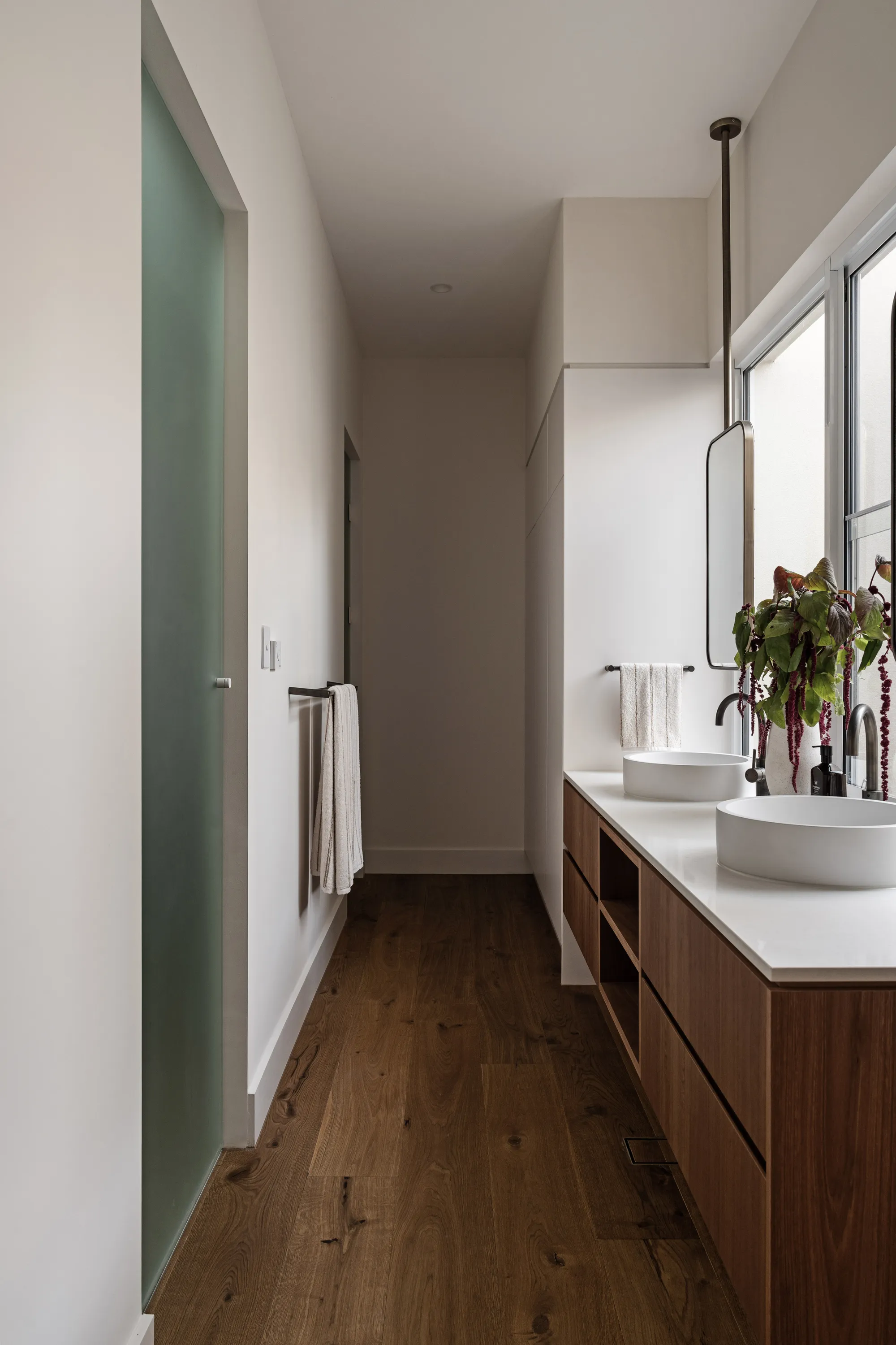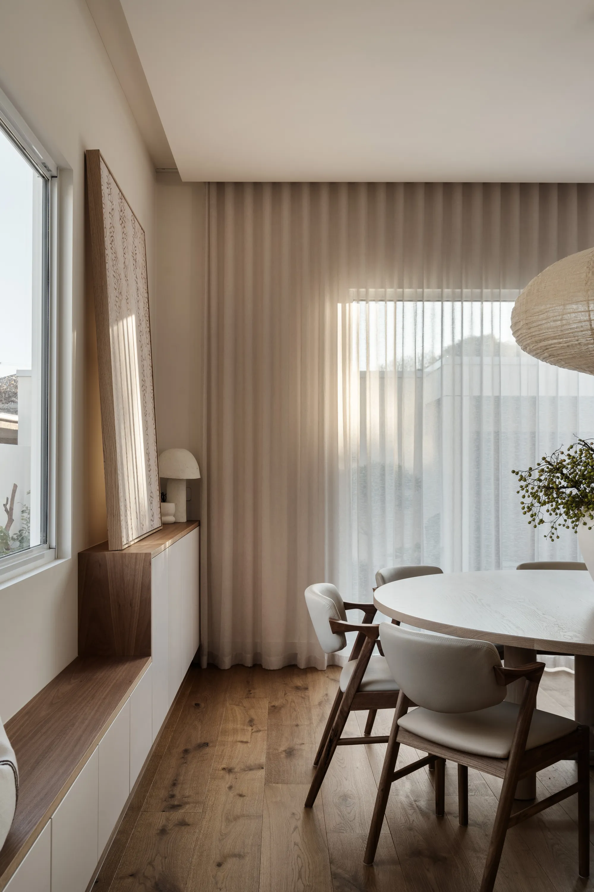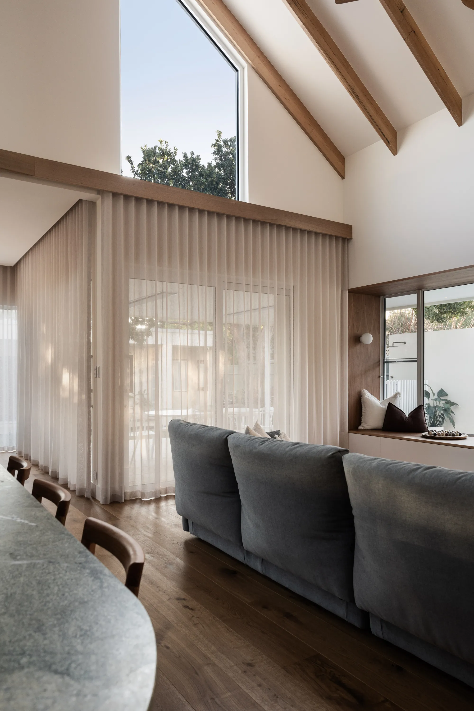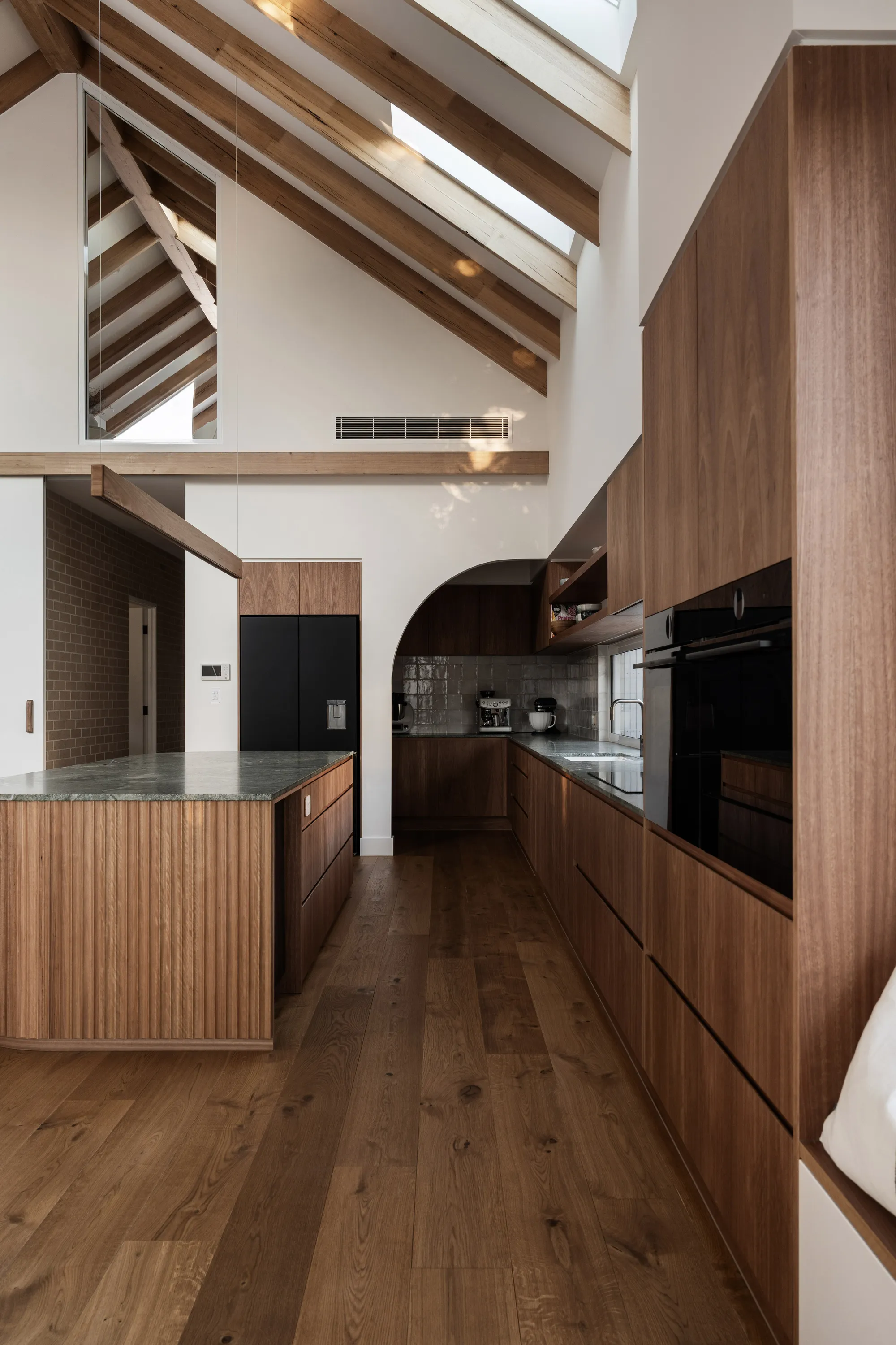 This new build blends sophistication and craftsmanship, with a modest façade that conceals soaring interiors and architectural drama. A vaulted ceiling, exposed timber beams and abundant light create grandeur, while rich cabinetry, archways and refined detailing ground the home. Thoughtful design connects living spaces to the pool and courtyards, delivering a timeless, functional sanctuary of elegance and calm.